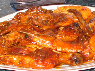 Paso 1: A los langostinos se les mete un palo de brocheta a lo largo del cuerpo. se meten en agua hirviendo hasta que cambian de color. Esto hará que queden totalmente verticales.