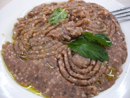 4. Incorporar el resto de la carne junto con 4 cucharadas de aceite y terminar el amasado.