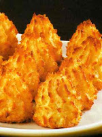 Primero pasar el coco rallado por el procesador o licuadora. El coco debe estar bien molido para trabajarlo con la manga rizada. Poner en una cacerola las yemas, los huevos, el azúcar y la miel. Llevar a un fuego medio y batir o revolver continuamente con batidor de alambre y a mano para que la preparación no se pegue. Continuar así hasta que se vean las primeras burbujitas en los bordes. No debe hervir. Se retira enseguida. La preparación queda bien líquida. Se continua mezclando y se le agrega la manteca y la vainilla. Se agrega el coco de a poco mientras se va mezclando. Se sigue agregando hasta que quede bien consistente y se vea el fondo al revolver. Se enmanteca una placa de horno. Se pone parte de la preparación en un manga con un puntero rizado bien grande ( en este caso se utilizó el puntero 825 ). Se apoya en puntero sobre la placa se aprieta la manga y se levanta. En este caso se empleó este sistema para que salieran los coquitos no demasiado grandes. Otra opción es hacerlos más elevados, en ese caso la cantidad es menor. Dejarlos que se oreen de un día para otro. Al día siguiente llevarlos a un horno fuerte y con calor de arriba para que las puntas se oscurezcan. Solo unos minutos. Es para darles ese toque personal que ellos tienen. Una vez fríos se pincelan con jalea caliente y de decoran con trozos de cerezas de ambos colores.