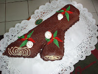 – Derretir el chocolate troceado al baño maría y, una vez enfriado, cubrir el rollo de bizcocho. Con un tenedor dibujar la corteza del tronco. Introducir en el frigorífico durante al menos 2 horas